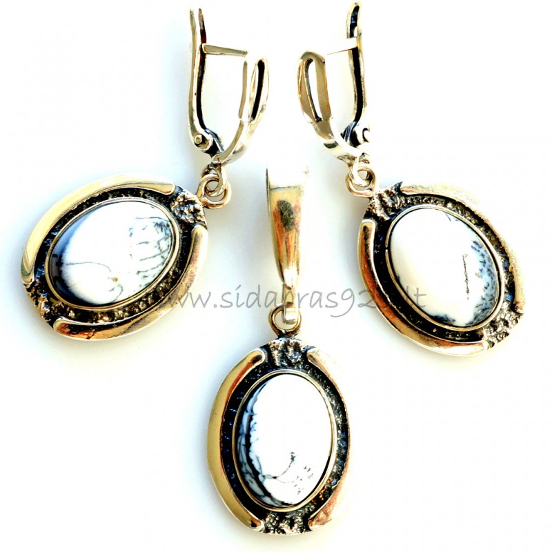 Earrings and pendant decorated with beautiful scenic Agate.