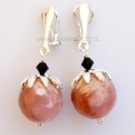 Silver clips decorated with black Swarovski crystal and a round, natural sun stone.