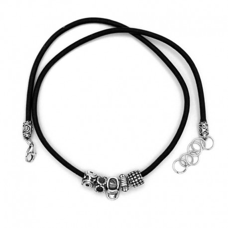 Classic necklace made of genuine leather with silver pendants.