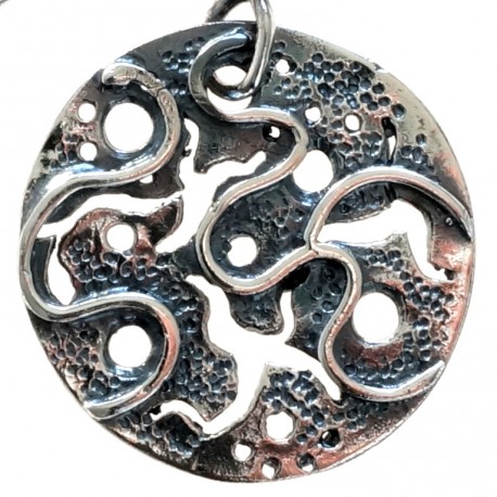 Incessant pendant, ornate on both sides.